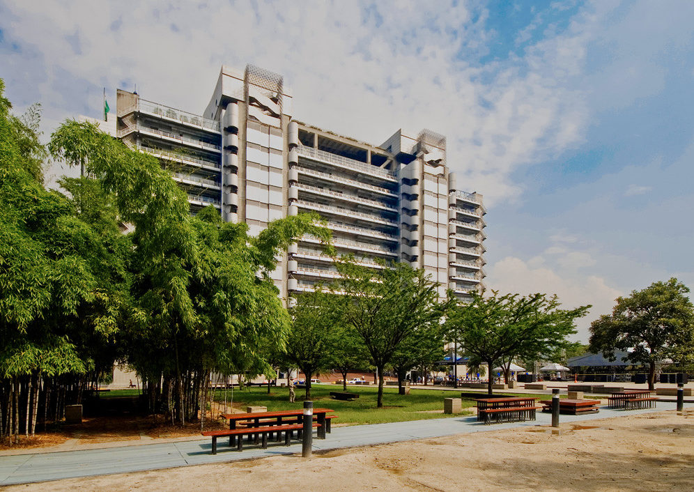 MAMM’s design is centered around open and inclusive architecture integrated into an urban space. The museum moved from Carlos E Restrepo to Ciudad del Río in 2009, to an area of Medellín historically dominated by the steel industry. The current structure of MAMM echoes the past, being an expansion of the Robledo Workshops (metal warehouses) and having a main body made up of steel boxes layered and rotated above one another. As a result, MAMM is a space in which both the old and new coexist simultaneously.