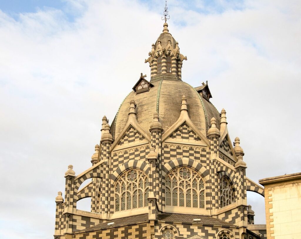 Palacio de la Cultura is one of the most photographed buildings in Medellín. Towering over Plaza Botero in El Centro, the striking palace was designed in a Gothic-Revival style, complete with chequered white and black stones, as well as a domed roof. The dome is widely considered a masterpiece due to its structure similar to that of New York skyscrapers – in which welding is substituted for heating nuts and bolts to tighten them and support the shape. Meanwhile, the interior has four floors, a courtyard, and a rooftop viewing deck.